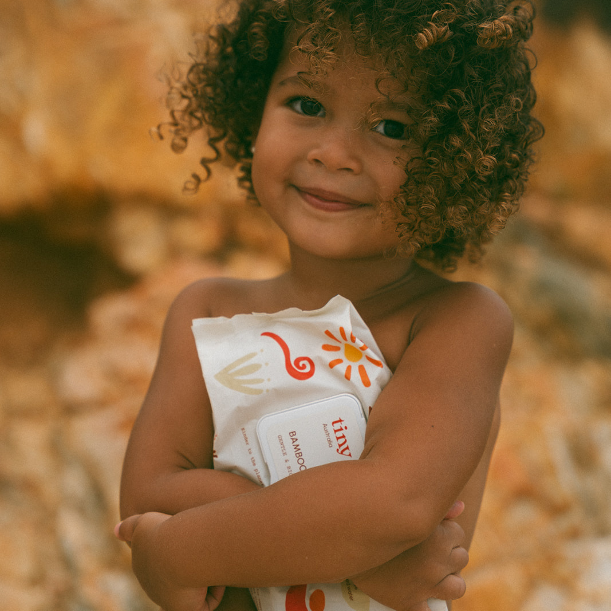 Soft, 'unbleached' bamboo baby wipes with manually pressed embossed pattern for easy and gentle wiping. Developed using kind, honest ingredients, perfect for keeping your little ones skin soft, nourished and protected. High-quality materials, dermatologically tested & certified with DERMATEST® and crafted from sustainably sourced, biodegradable bamboo fibers.