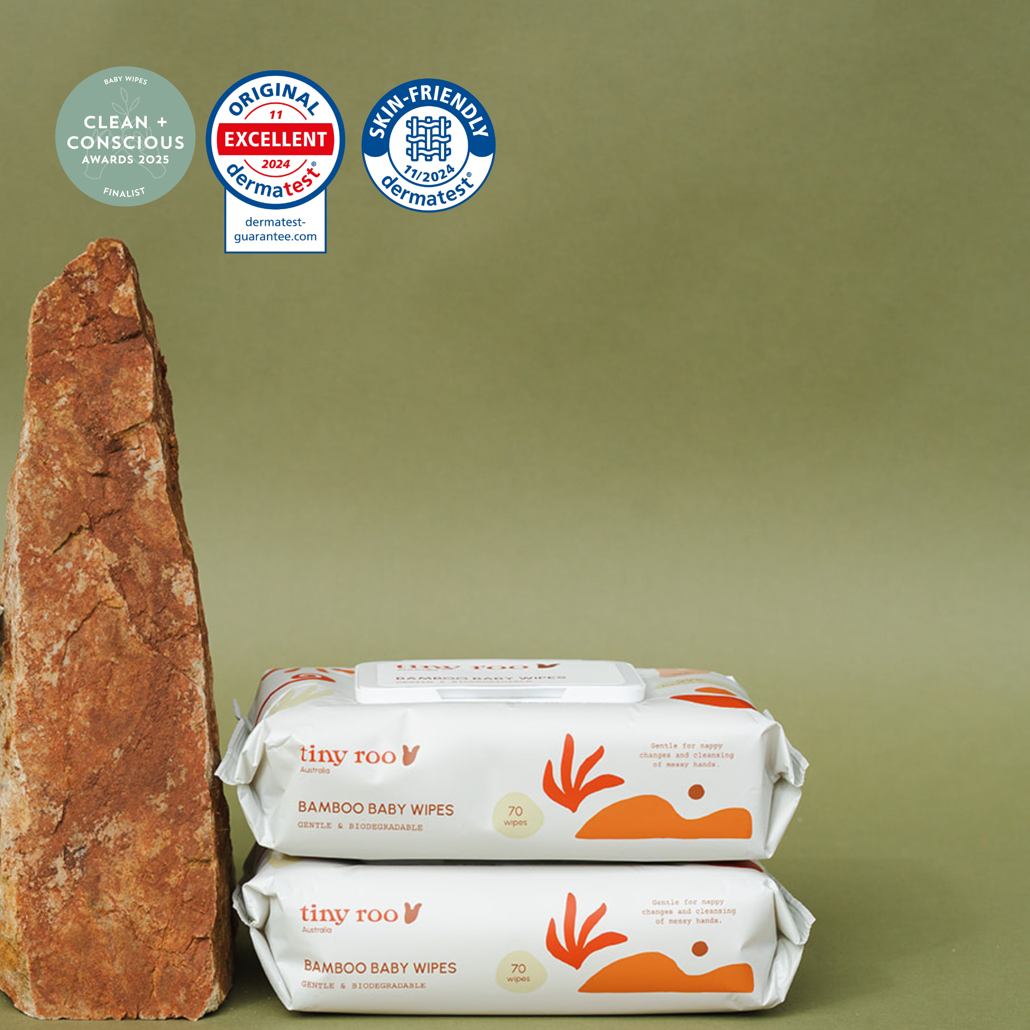 The DERMATEST® Original Seal and Skin-Friendly Material Seal shows that our wipes have been independently dermatologically tested and are proven to be skin-safe. These certifications ensures our wipes do not cause irritation or hypersensitivity, even on delicate skin.